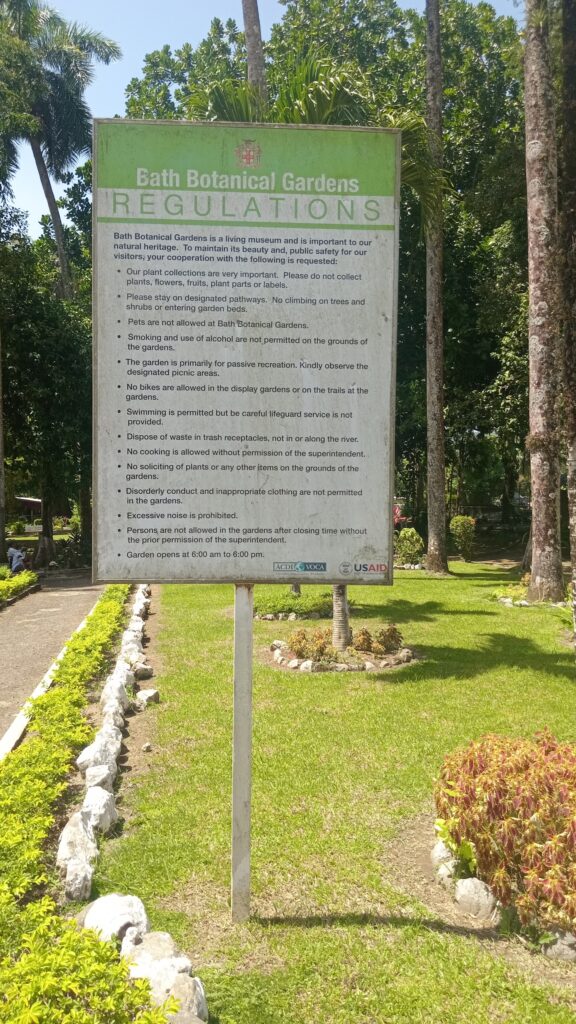 Entrance: Bath Botanical Gardens St. Thomas (photo taken in August of 2025)